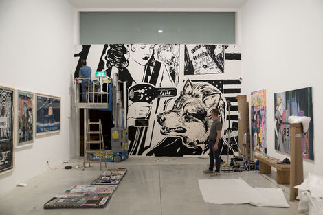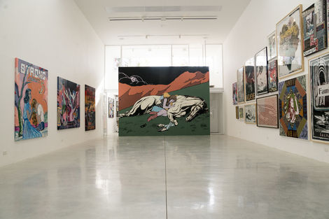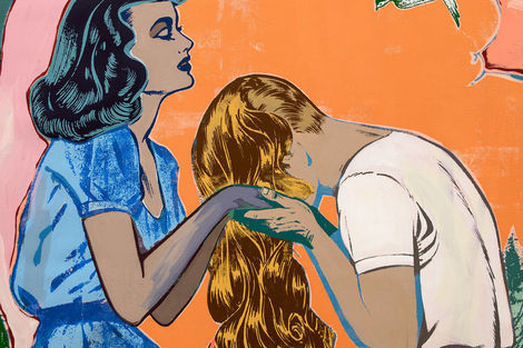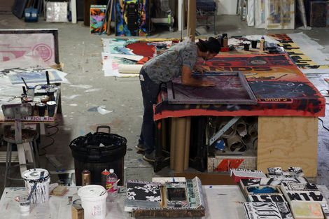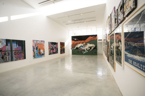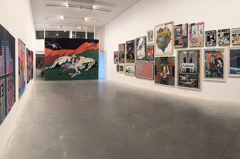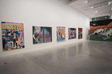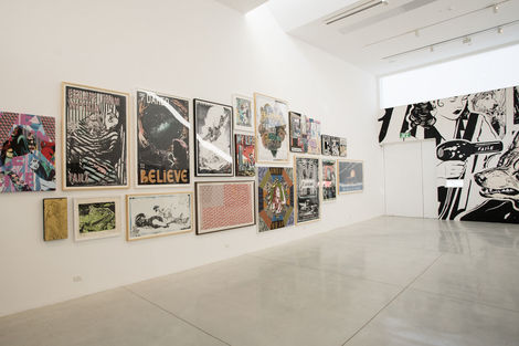 For their first show in Tel Aviv, FAILE unveils Strong Currents, a new suite of paintings and works on paper. As the title suggests, the work investigates forces that may not be visible, but are powerful nonetheless. In many ways, these undercurrents refer to FAILE’s ongoing technical process, of attending to and riffing on the many layers of their compositions— including abstract color fields, which have long grounded their iconic imagery but shine through here with particular intensity.