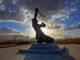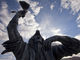 October of 2012, New York artists FAILE unveiled their sculpture Wolf Within at the site of the National Garden Park in Ulaanbaatar, Mongolia. The figure—a man cloaked in a wolf pelt, tearing away the remnants of a two piece suit in revelation—is a familiar one for those acquainted with FAILE’s work. Wolf Within was conceived on the brink of the 2008 financial crisis for a series of paintings that fused a decadent capitalist landscape with a lost but resurgent past. Images of native warriors set amidst gleaming skyscrapers opened the question of what we lose and gain in our pursuit for ever greater wealth, and figured the dangers of our entrenched political and economic systems.